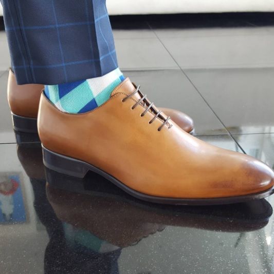 Handmade Men's Tan Brown Derby Leather Lace Up Formal Wear Shoes