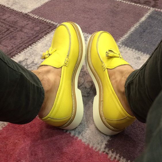 Hot Sale Men's Tassels Loafer In Yellow Color Leather Shoes, Hand Stitch Casual Wear Shoes