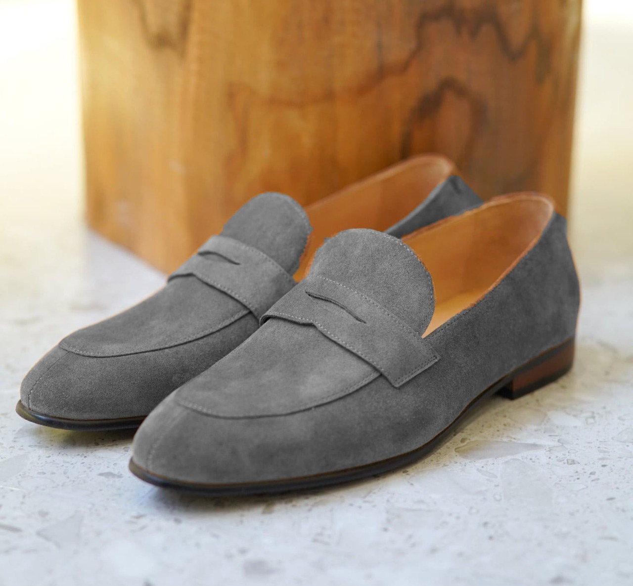 Hand Stitch Men's Grey Moccasin In Suede Formal Wear Shoes