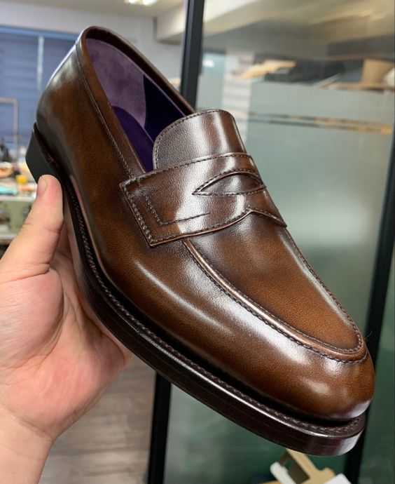 Awesome Wear Men's Hand Stitch Dark Brown Genuine Leather Moccasin Slips On Loafers Formal Wear Shoes