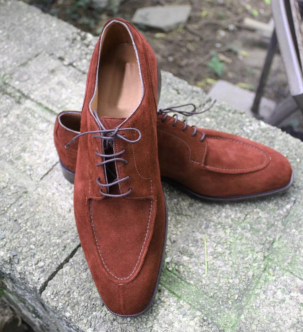 Decent Hand Made Men's Brown Split Toe Lace Up Suede Shoes