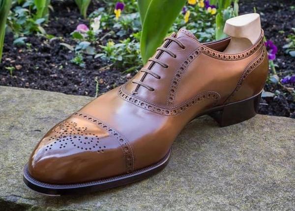Handmade Men Classic Brown Leather Cap Toe Lace Up Shoes