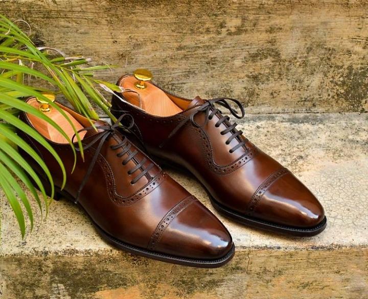 Awesome Chocolate Brown Cap Toe Leather Shoes, Hand Made Lace Up Shoes