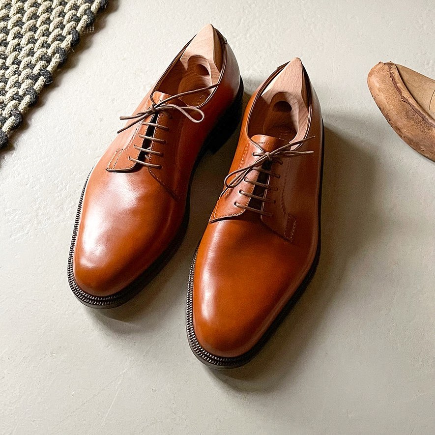 Decent Wear Men's Hand Stitch Brown Leather Lace Up Shoes