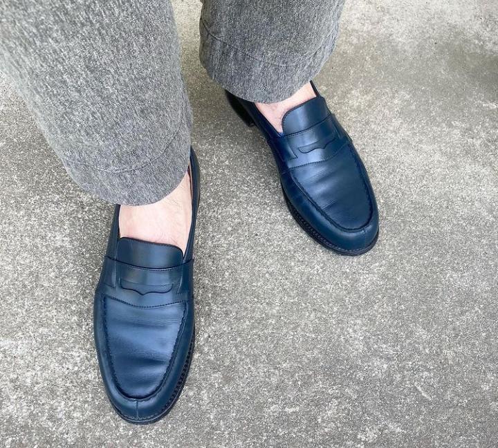 Classic Men's Hand Stitch Navy Blue Shoes, Leather Moccasin Formal Shoes