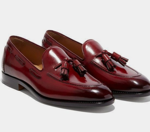 Men burgundy leather formal wear loafers slips on handmade leather men shoes
