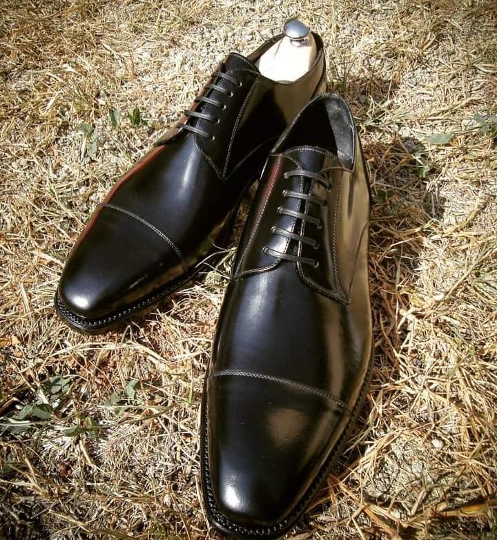 Decent Wear Men's Hand Stitch Black Cap Toe Office Shoes, Lace Up Leather Shoes