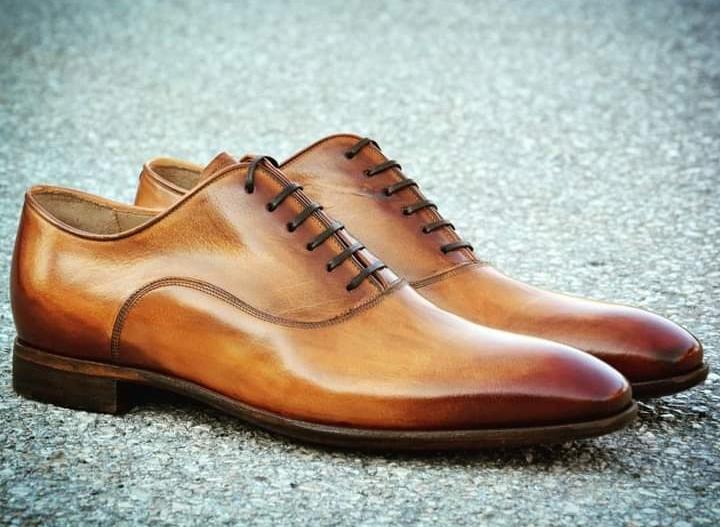Casual Wear Men's Hand Stitch Brown Genuine Leather Lace Up Shoes