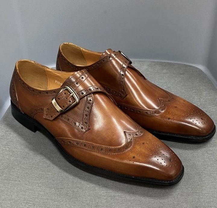 Best Men's Handmade Brown Wingtip Leather Shoes, Single Monk Shoes