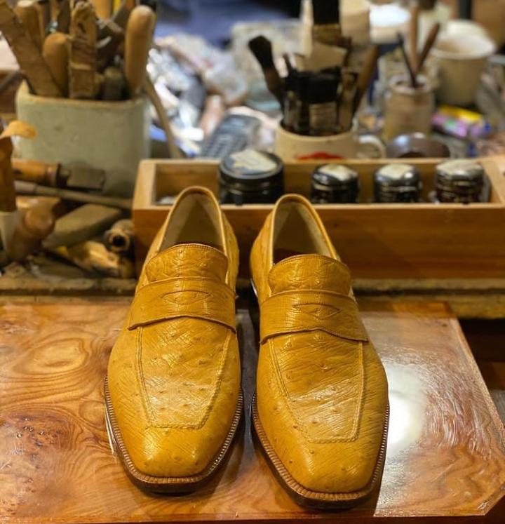 Handmade Men Ostrich Leather Pattern Penny Loafer Formal Men's Shoes