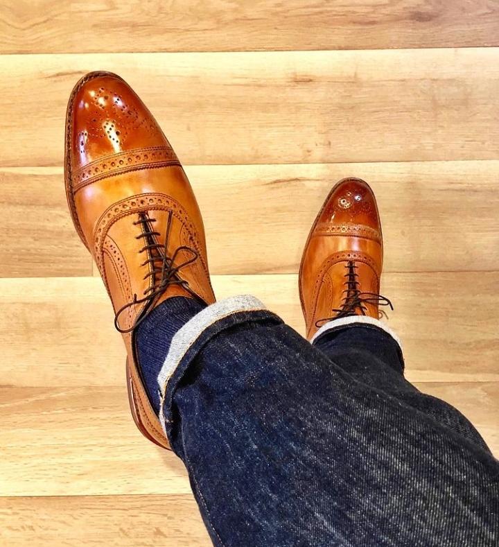 Hand Stitch Men's Oxfords Cap Toe Brogue Leather Lace Up Formal Shoes