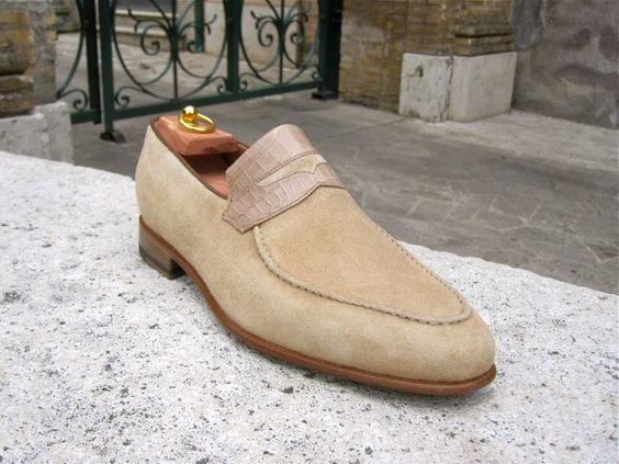 Decent Wear Men's Hand Stitch Beige Moccasin Genuine Suede Formal Shoes