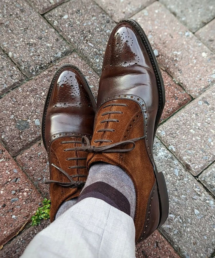 Awesome Wear Men's Hand Stitch Brown Oxfords Brogue Leather Suede Lace Up Shoes