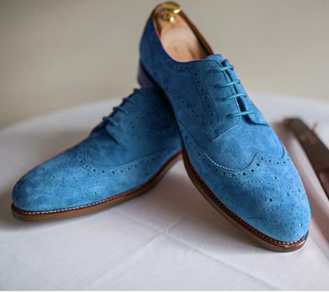 Men's Casual Looks Handmade Men's Blue Suede Wingtip Designer Handmade Dress Shoes