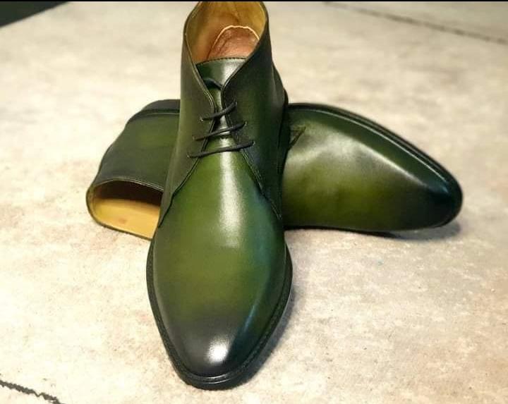 Trending Handmade Olive Color Leather Chukka Lace Up Boot