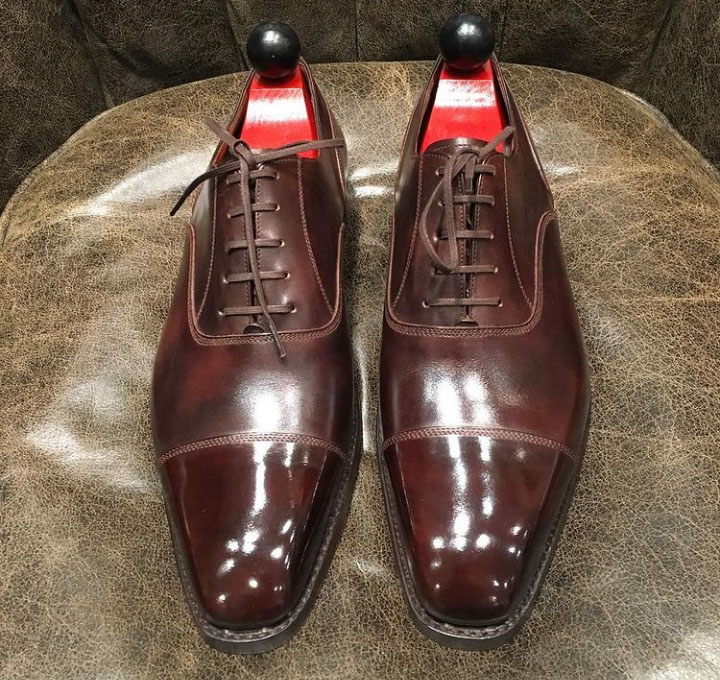 Classic Men's Handmade Dark Brown Cap Toe Leather Lace Up Shoes