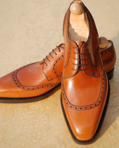 Hot Sale Men's Hand Stitch Brown Lace Up Genuine Leather Wedding Shoes
