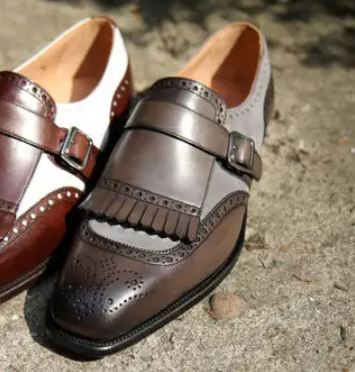 Classic Men's Hand Stitch Two Tone Leather Shoes, Fringe Monk Brogue Style Wedding Shoes