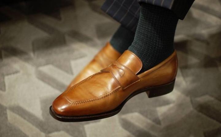 Elegant Men's Hand Stitch Brown Moccasin Leather Formal Shoes