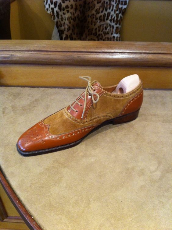 Hot Sale Men's Handmade Brown Leather Suede Wingtip Lace Up Party Wear Shoes