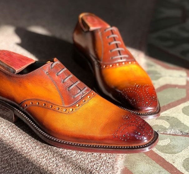 Classic Hand Stitch Two Tone Leather Shoes, Brogue Lace Up Formal Shoes