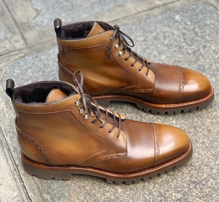 Elegant Men's Hand Stitch Brown Ankle High Boot, Lace Up Leather Wedding Shoes