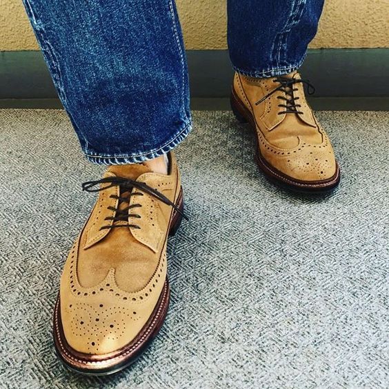 Decent Wear Men's Hand Stitch Camel Colour Genuine Suede Lace Up Shoes