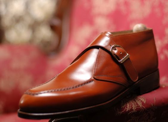 Elegant Men's Hand Stitch Brown Single Monk Strap Formal Boot