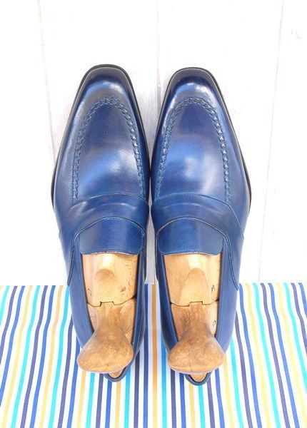 Hot Sale Men's Hand Stitch Blue Leather Moccasin Formal Shoes