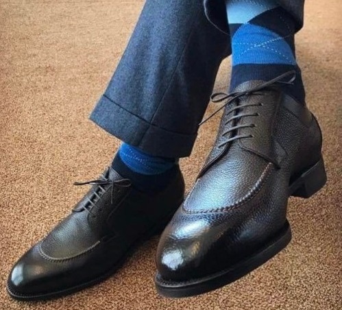 Luxury Style Men's Black Cow Leather Handmade Lace Up Shoes