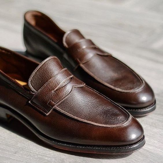 Luxury Men's Hand Stitch Brown Genuine Leather Moccasin Casual Wear Shoes