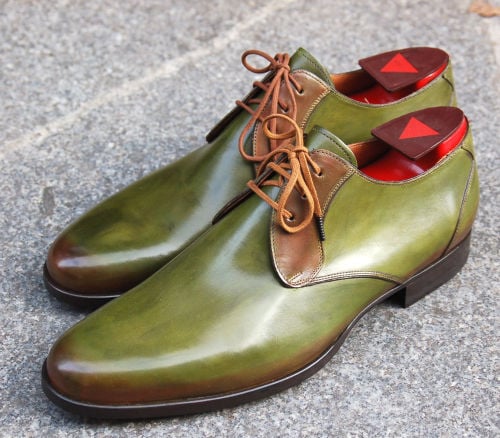 Men's Olive Color Really Awesome Finished Handmade Laceup Shoes