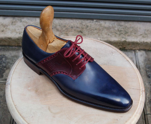 Navy Blue Oxfords Touch Hand Made Designer Dress Shoes FOr Men's
