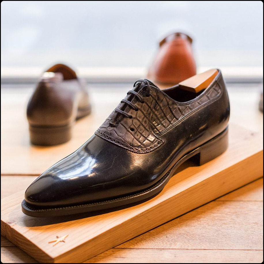 Men's Black Alligator Contrast Touch Handmade Lace Up Shoes