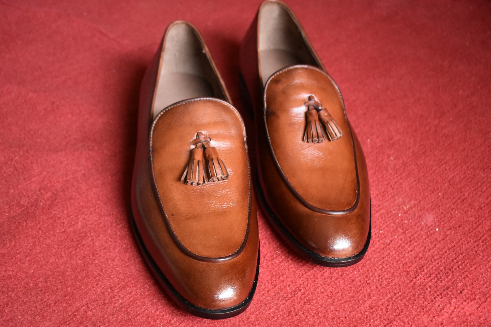 New Men's Hand Stitch Brown Shoes, Genuine Leather Tassels Loafer Formal Shoes