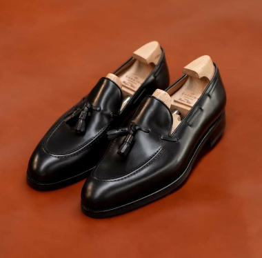 Black Leather Tassles Loafers Shoes 7 Star Handmade Edition
