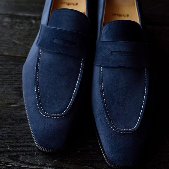 Navy Blue Penny Loafers Dress Moccasin Handmade Loafers Shoes