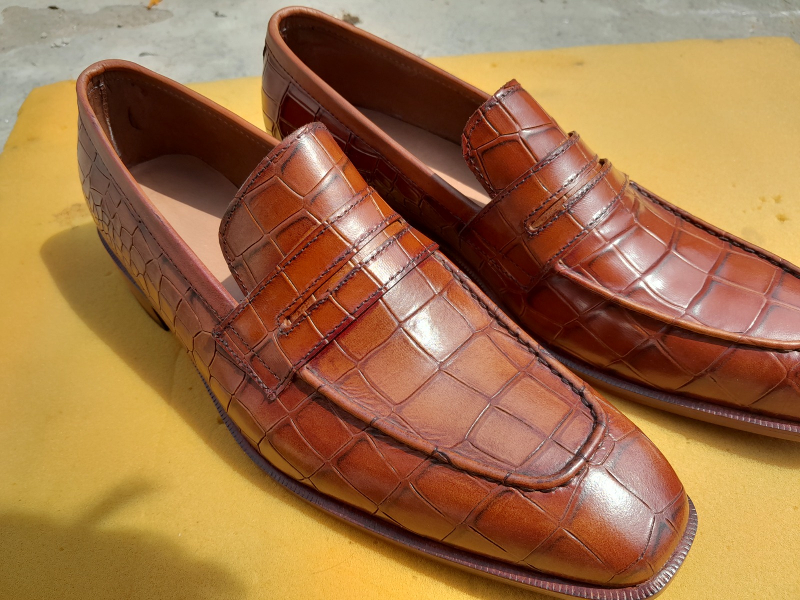 Brown Leather Penny Loafers Moccasin Dress Handmade Shoes Specially Made For Christmas