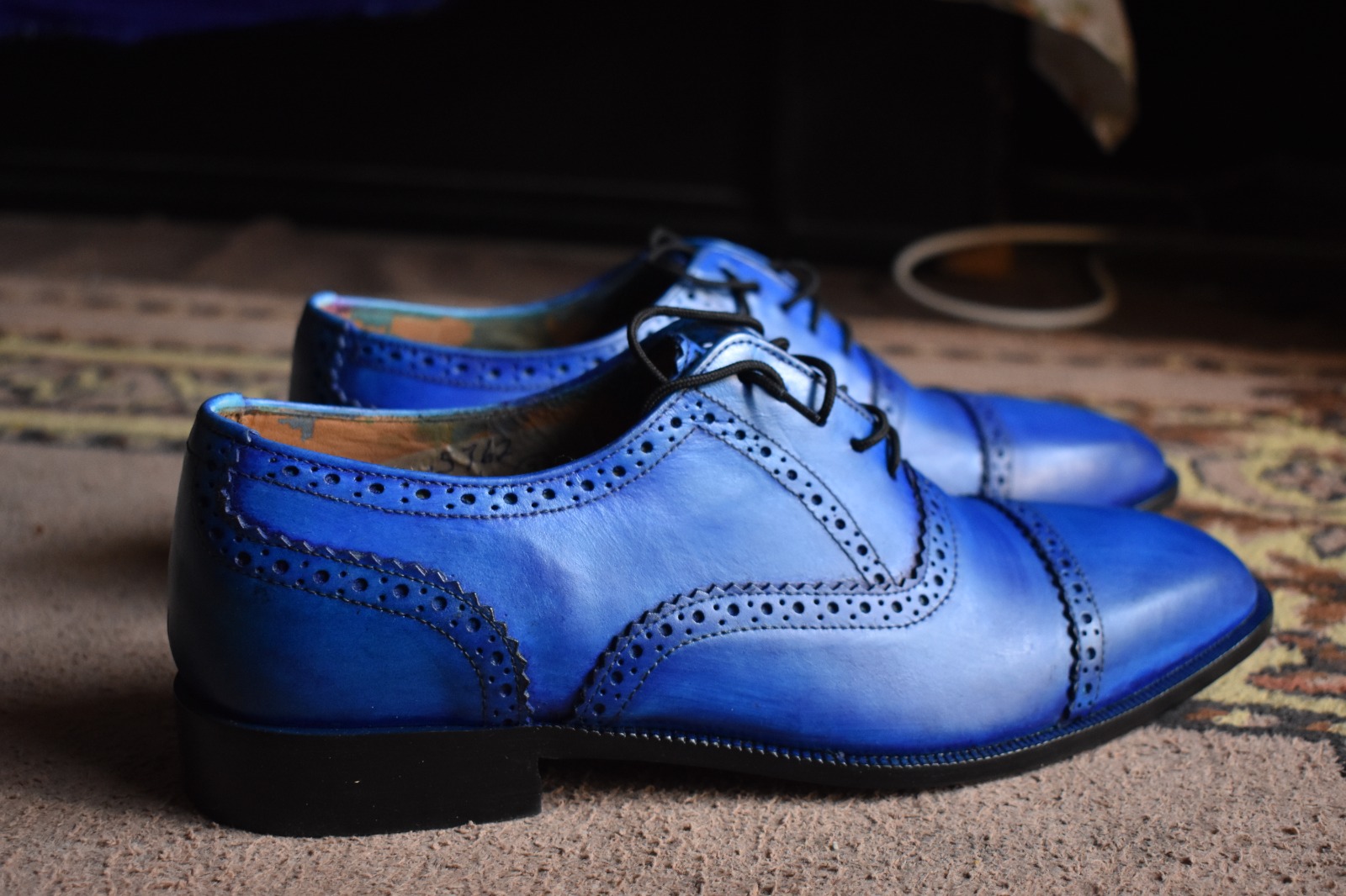 Blue Cap Toe Handmade Lace Up Dress Up Shoes