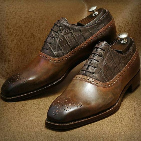 Best Sale TwoTone Alligator Contrast Touch Brogue Shoes Handmade Dress Lace Up Shoes
