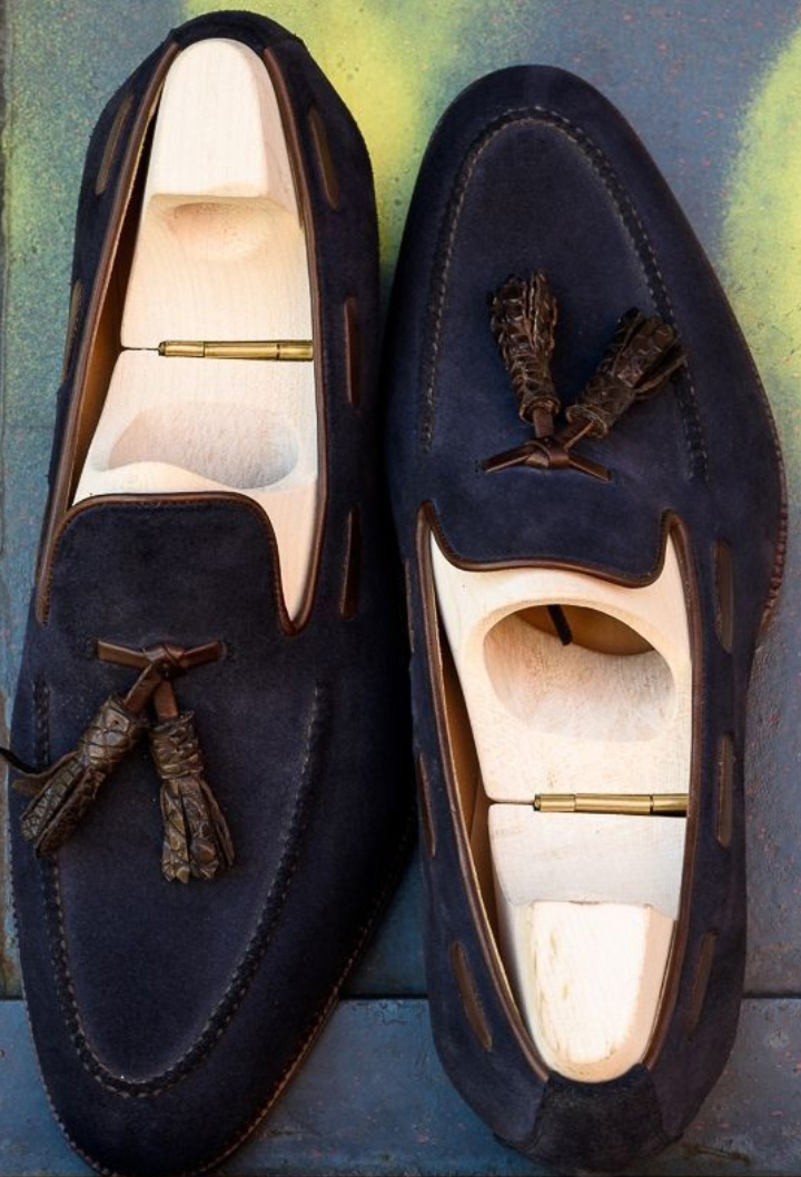 Hot Sale Men's Christmas Navy Blue Genuine Suede Tassel Loafer Formal Shoes