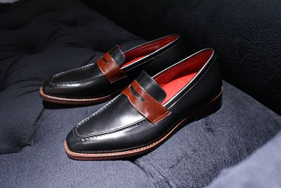 Black Leather Loafers Slips On Moccasin Dress Shoes Handmade Edition