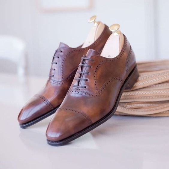 Brown Cap Toe Oxfords Dress Formal Handmade Shoes